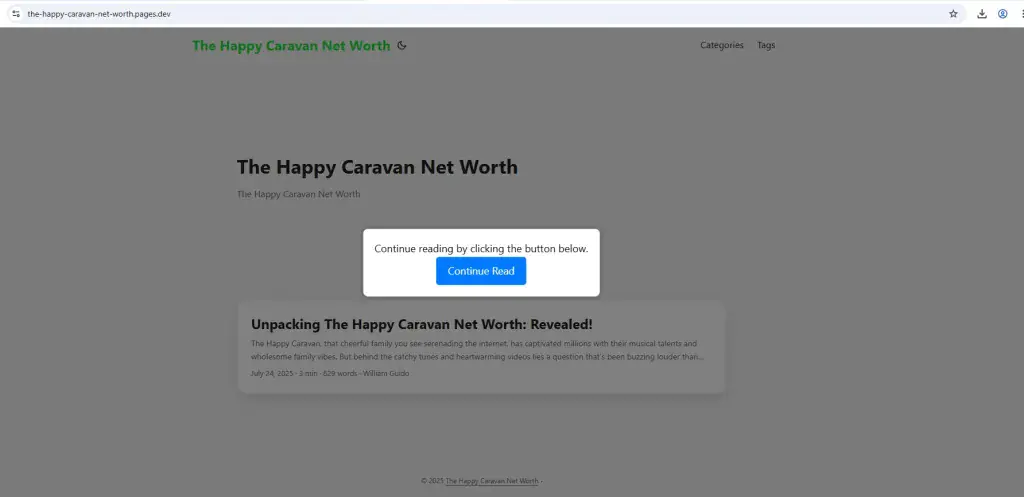 Изначальная точка входа для жертвы выглядит абсолютно безобидно. Пользователь, возможно, найдя статью через поисковую систему, попадает на страницу, размещенную на доверенном домене Cloudflare Pages (*.pages.dev). Через несколько секунд после загрузки на экране появляется навязчивое всплывающее окно с просьбой нажать кнопку «Продолжить чтение» (Continue reading). Этот прием является ключевым элементом обхода систем безопасности.