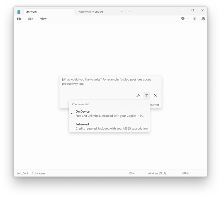 Обновление встраивает в привычный интерфейс Блокнота три ключевые ИИ-опции: «Написать», «Перефразировать» и «Суммаризировать». Эти инструменты используют как локальные, так и облачные модели ИИ, что обеспечивает гибкость в зависимости от наличия подписки и типа устройства. Владельцы компьютеров с архитектурой Copilot+ смогут использовать все возможности без ограничений и без подключения к интернету, поскольку обработка запросов происходит непосредственно на устройстве. Это не только устраняет необходимость в подписке на Microsoft 365 или Copilot Pro, но и гарантирует конфиденциальность данных.