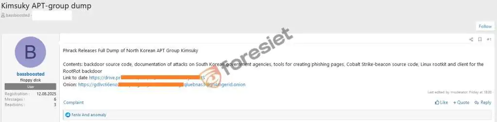 В конце августа 2025 года в darknet-форумах появилась масштабная утечка данных, связанная с деятельностью северокорейской хакерской группы Kimsuky. Архив, содержащий виртуальные машины, дампы VPS-серверов, фишинговые комплекты, руткиты и тысячи учетных данных, предоставил исследователям кибербезопасности беспрецедентный доступ к внутренним операционным процессам одной из самых активных групп, связанных с Пхеньяном.