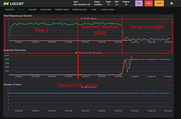 Тестирование, проведенное Imperva, показало, что в реалистичных условиях атака на сервер OpenLiteSpeed с 512 МБ оперативной памяти может полностью вывести систему из строя при достижении 100% использования памяти. Это провоцирует условия нехватки памяти (Out-of-Memory, OOM), что ведет к остановке процессов и недоступности сервисов.