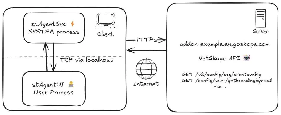 Проблема заключается в процессе регистрации клиента Netskope. Исследователи Ричард Уоррен и Дэвид Кэш из Amber Wolf выявили, что им можно манипулировать через сложную цепочку атаки. Эксплуатация уязвимости использует механизм взаимодействия между процессом пользовательского интерфейса с низкими привилегиями (stAgentUI) и привилегированной службой (stAgentSvc), работающей с правами SYSTEM.